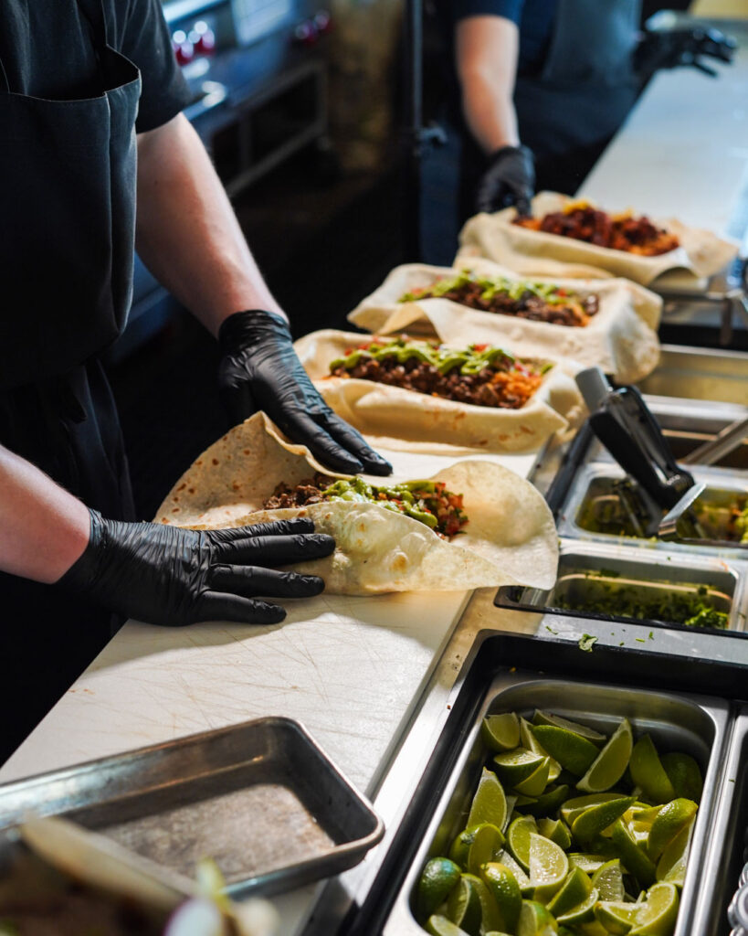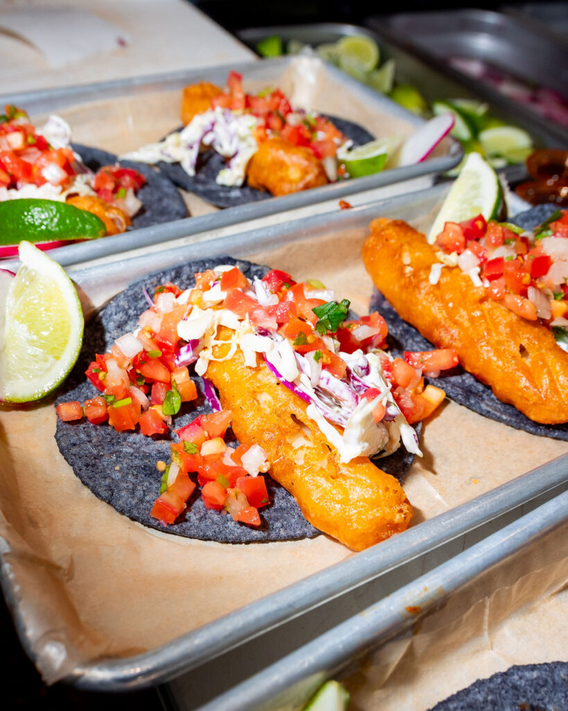 Starting at $18 per person + tax, each package includes three tacos per guest, plus rice, beans, and chips. 20-person minimum.